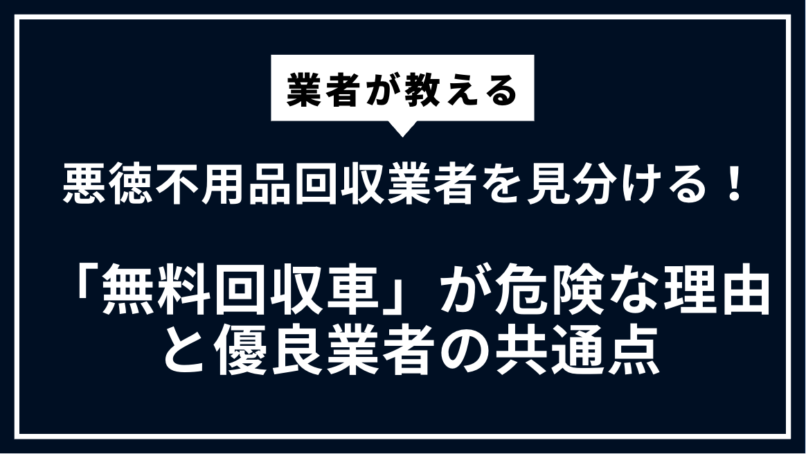 悪徳不用品回収業者を見分ける!「無料回収車」が危険な理由と優...
